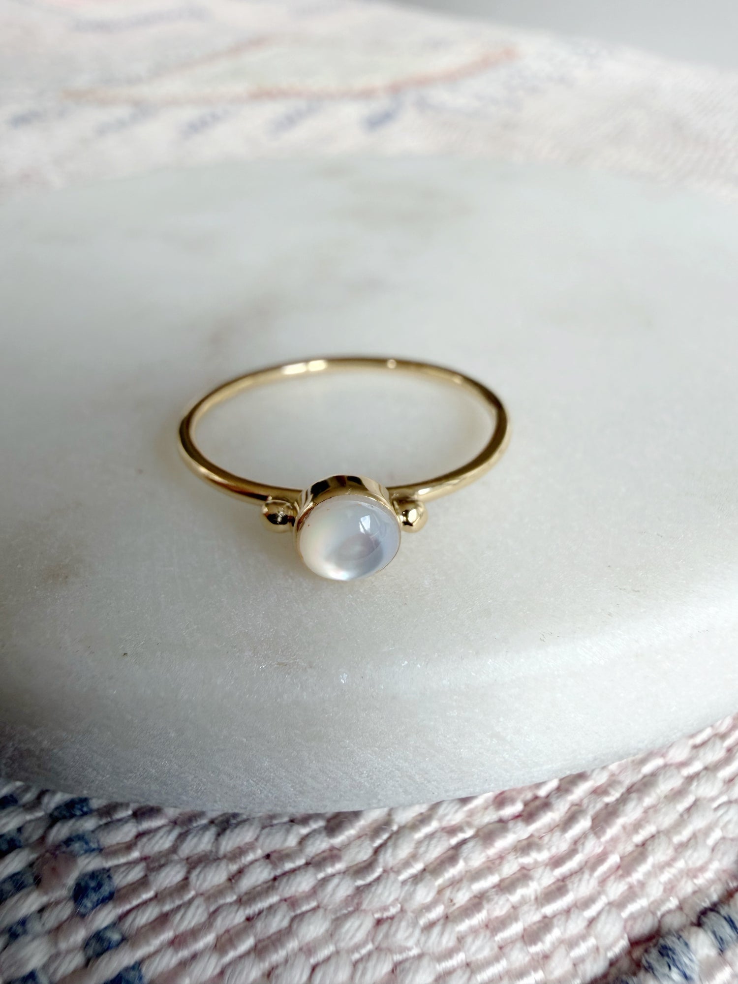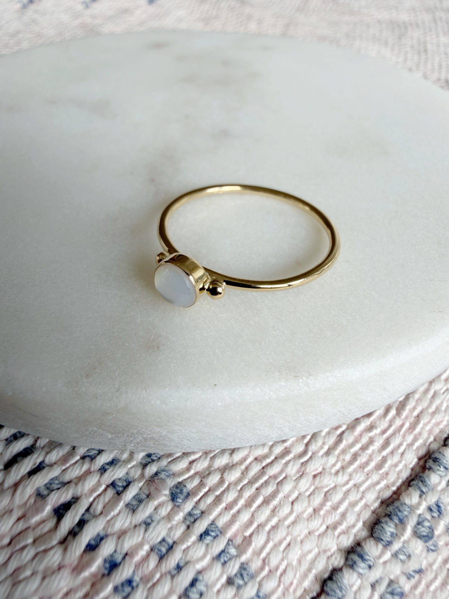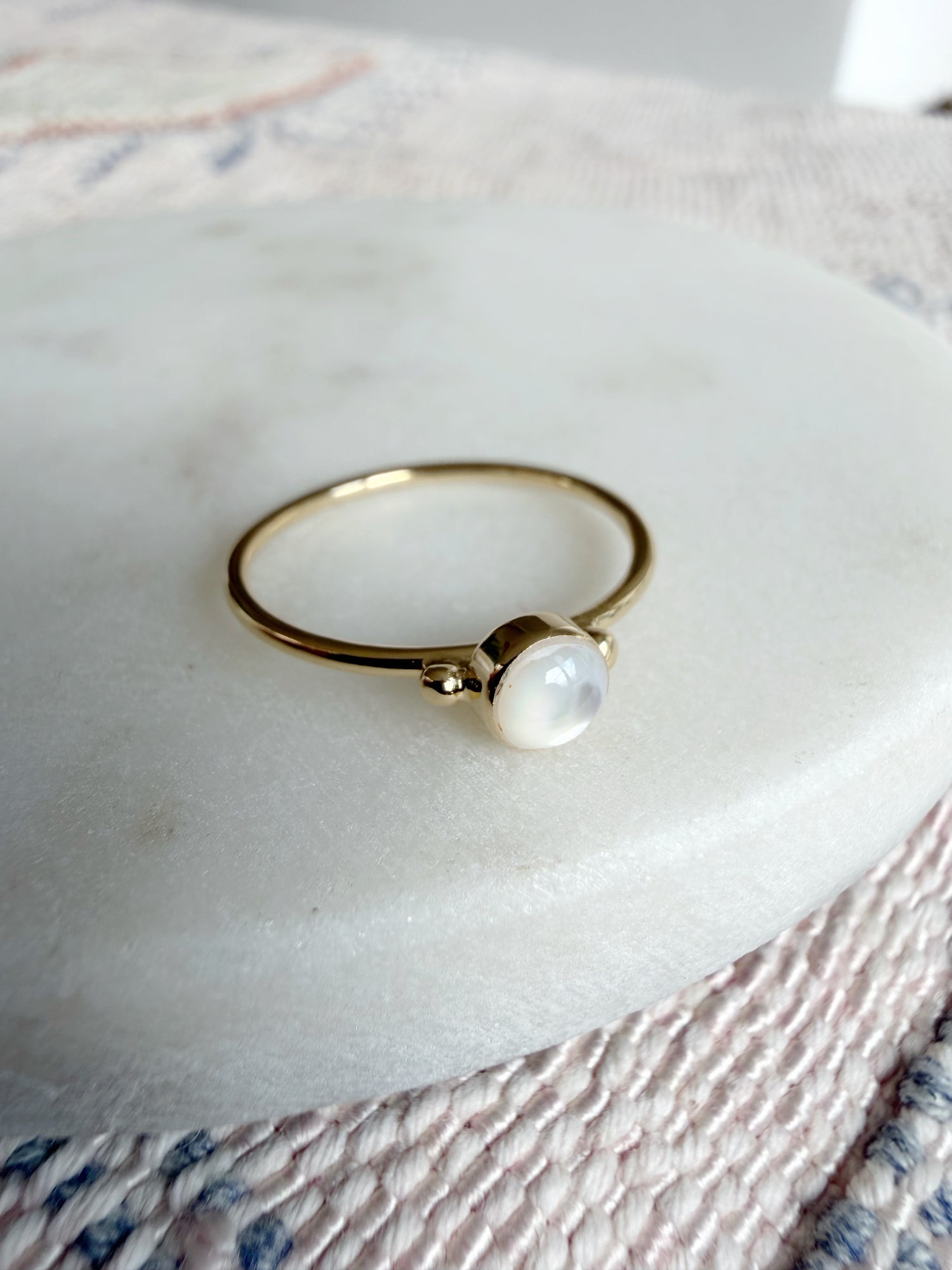 Delicate Round Mother of Pearl Ring - gold