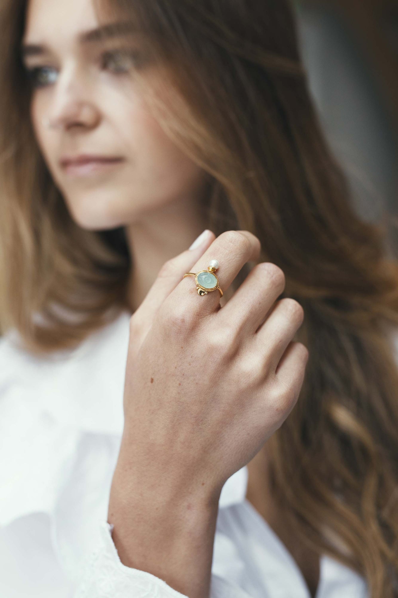 Stones Aqua Chalcedony. Pearl