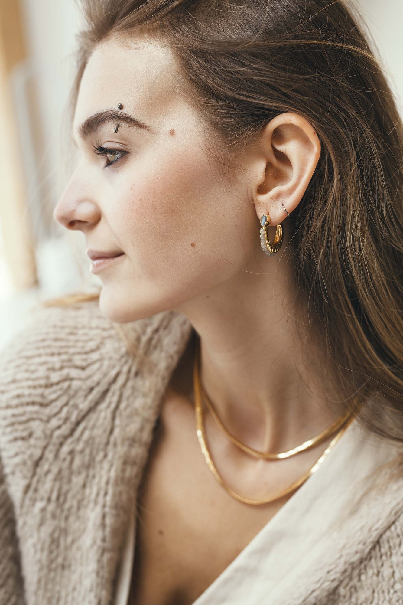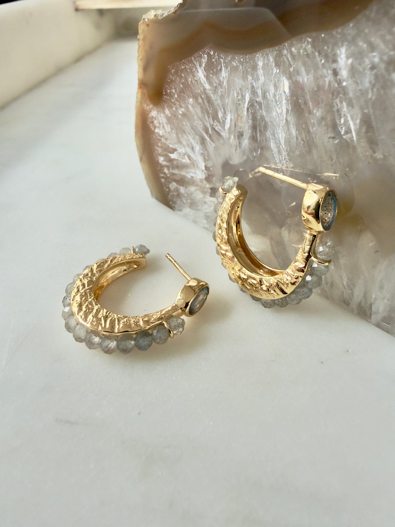 Material Handcrafted in recycled sterling silver, plated in 18k gold. Labradorite.
