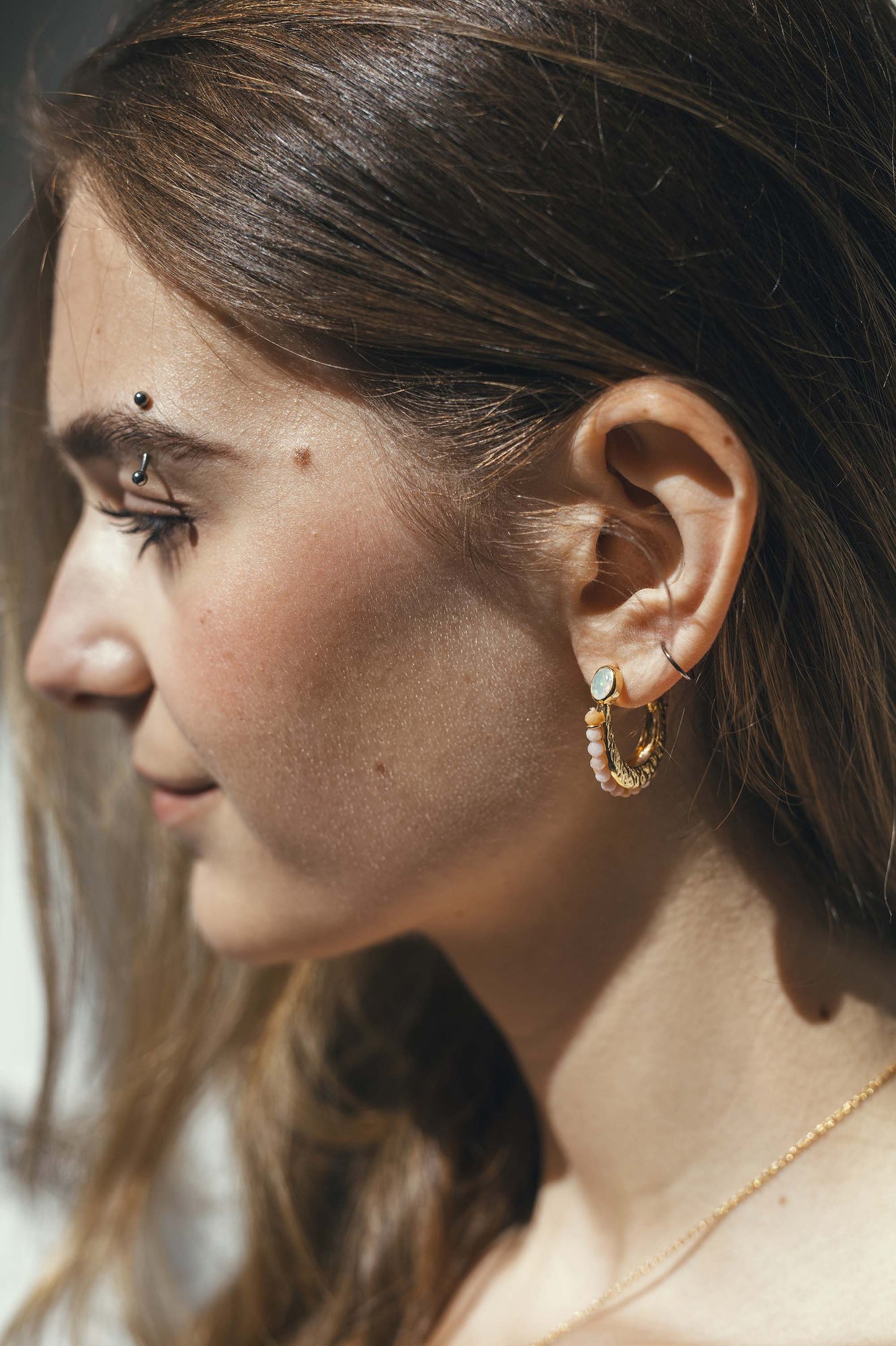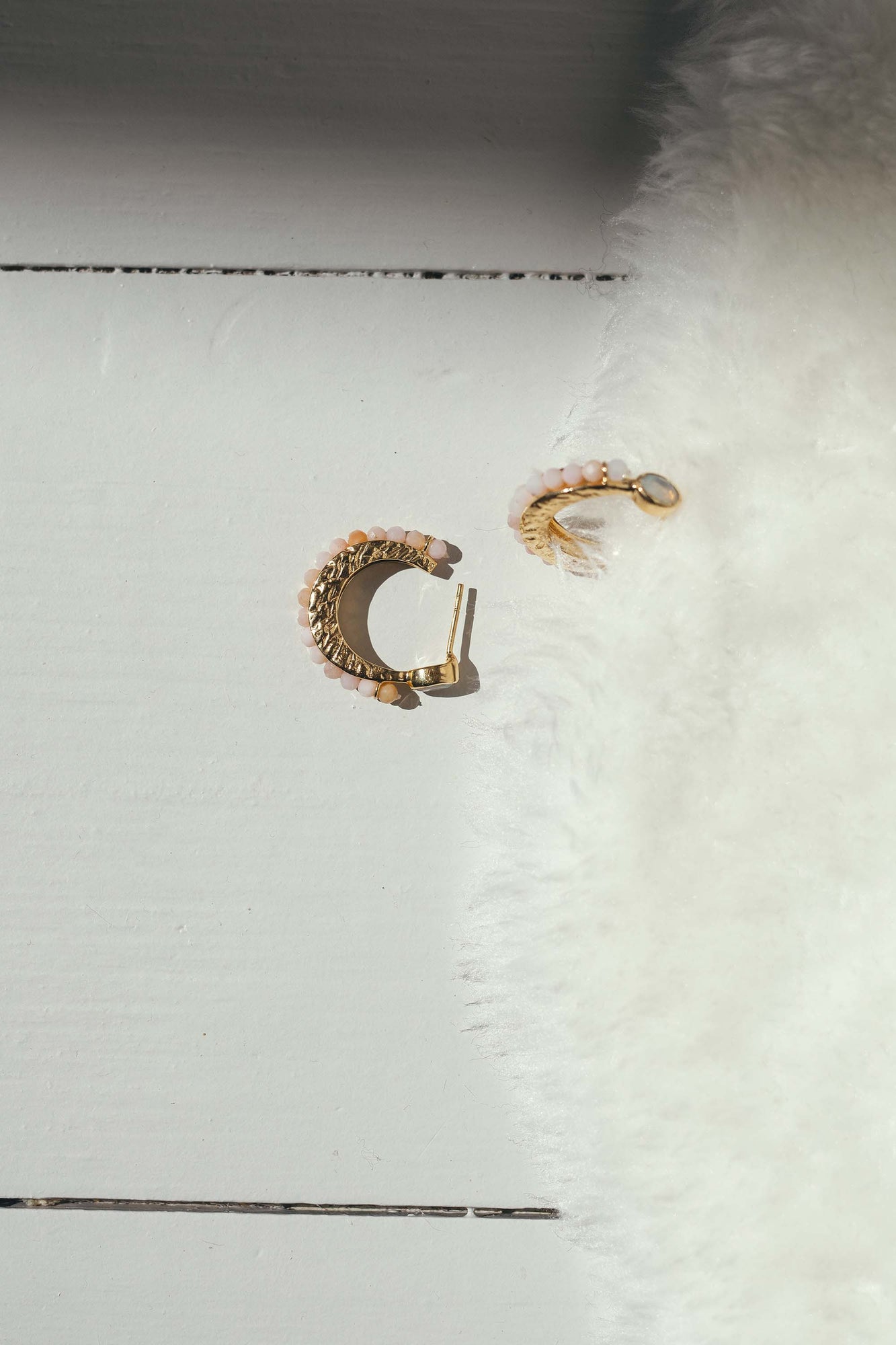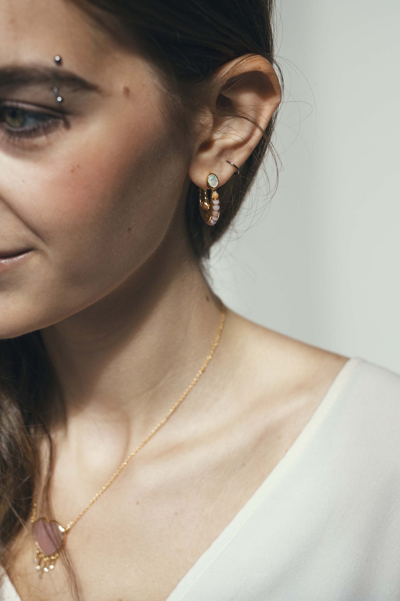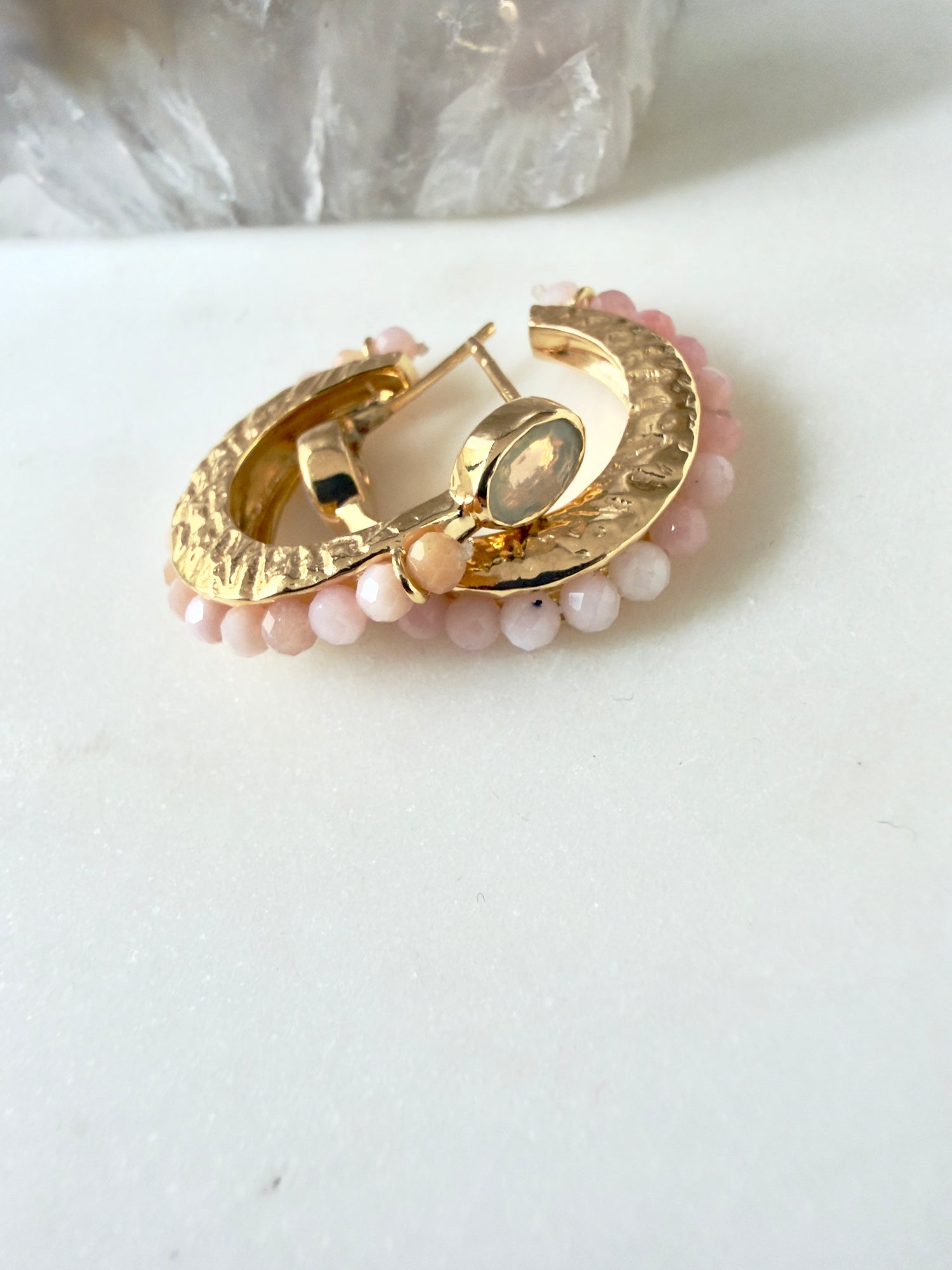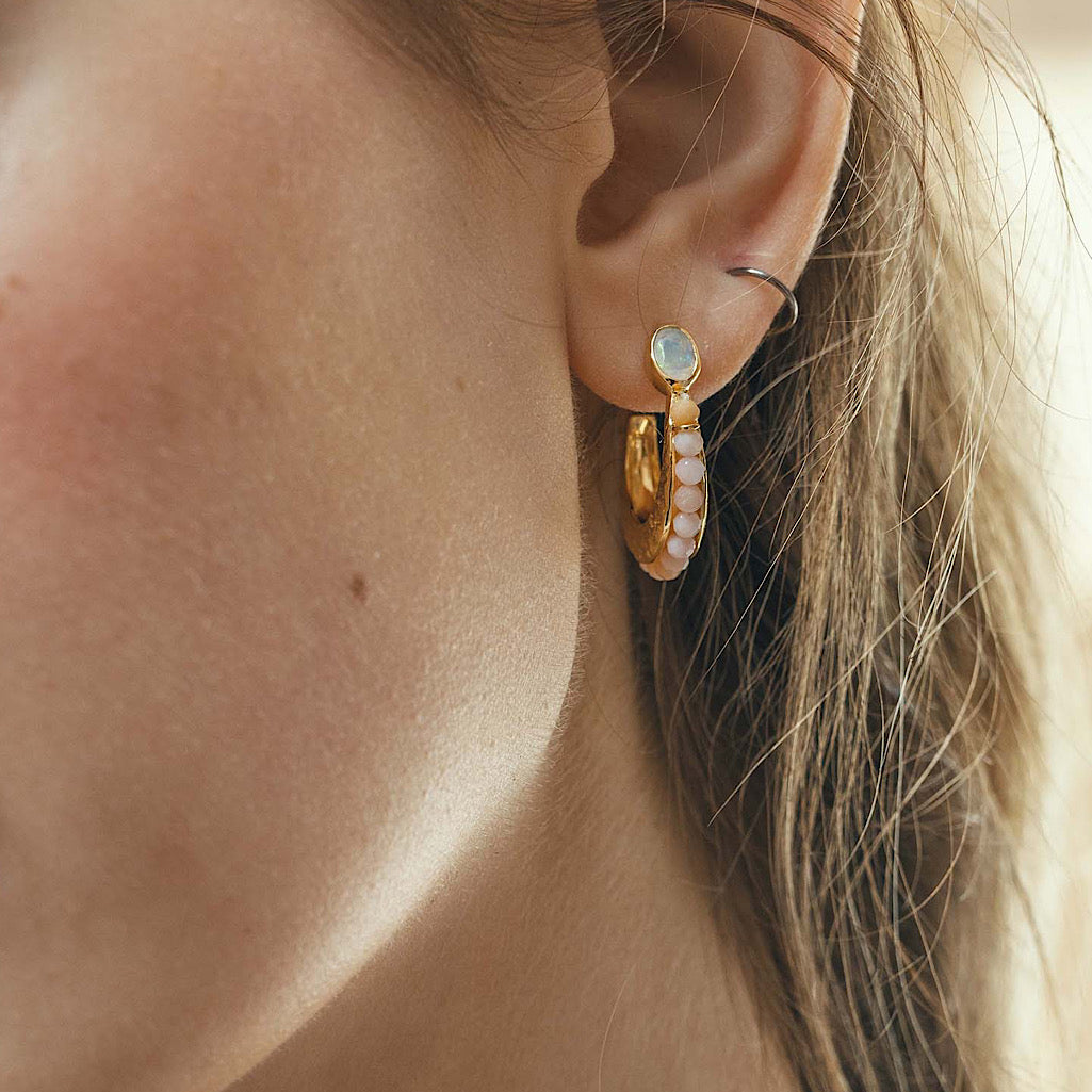 Material Handcrafted in recycled sterling silver, plated in 18k gold. Pink Opals and Ethiopian Opal