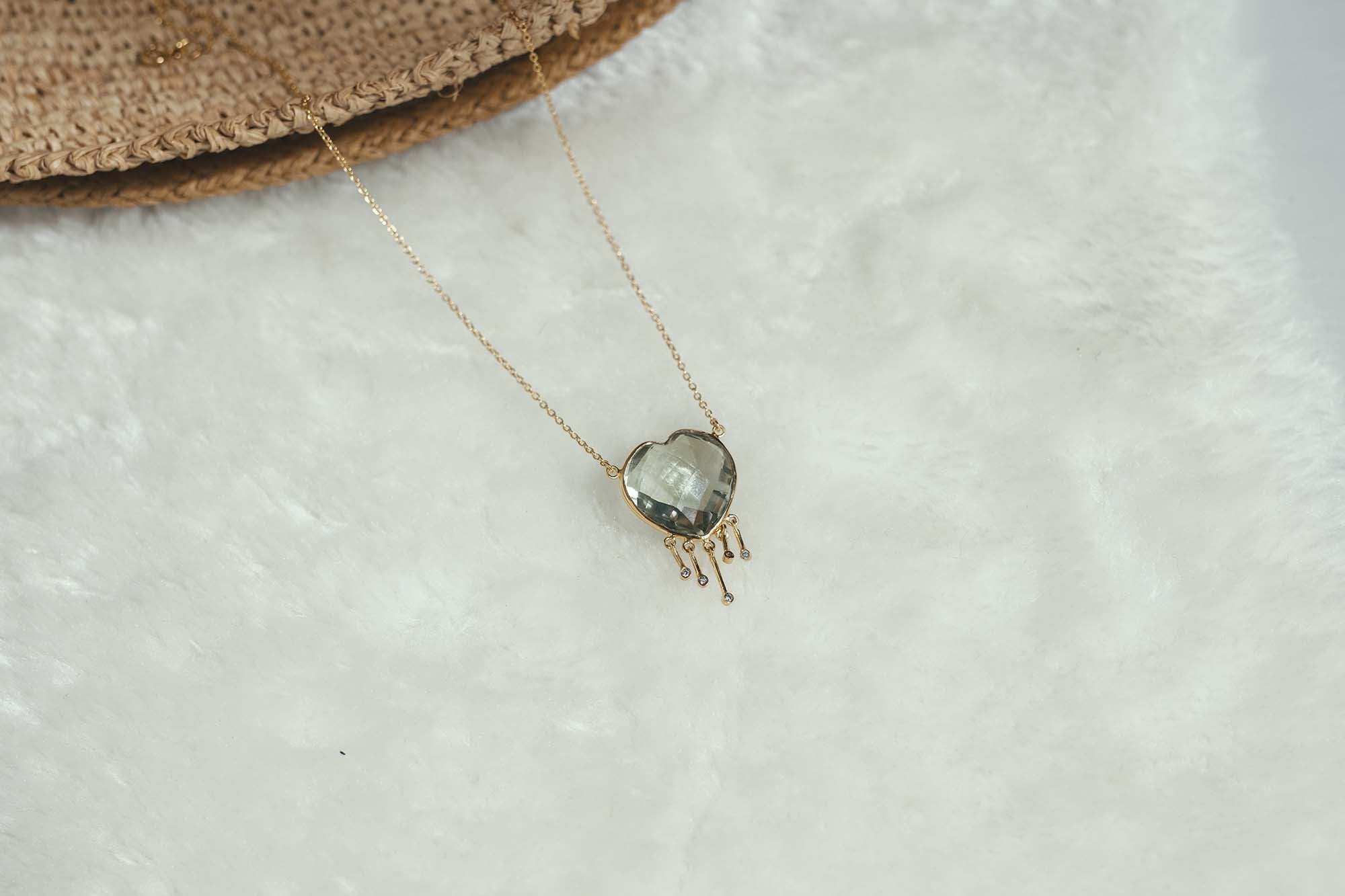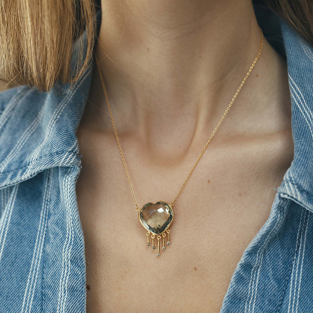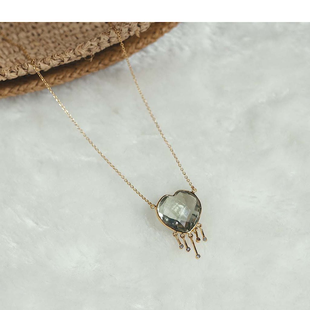 | Material | Sterling silver plated in 18k gold. Green Amethyst and White Zircon |