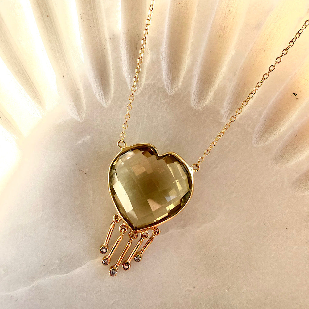 Lemon Quartz Heart Necklace