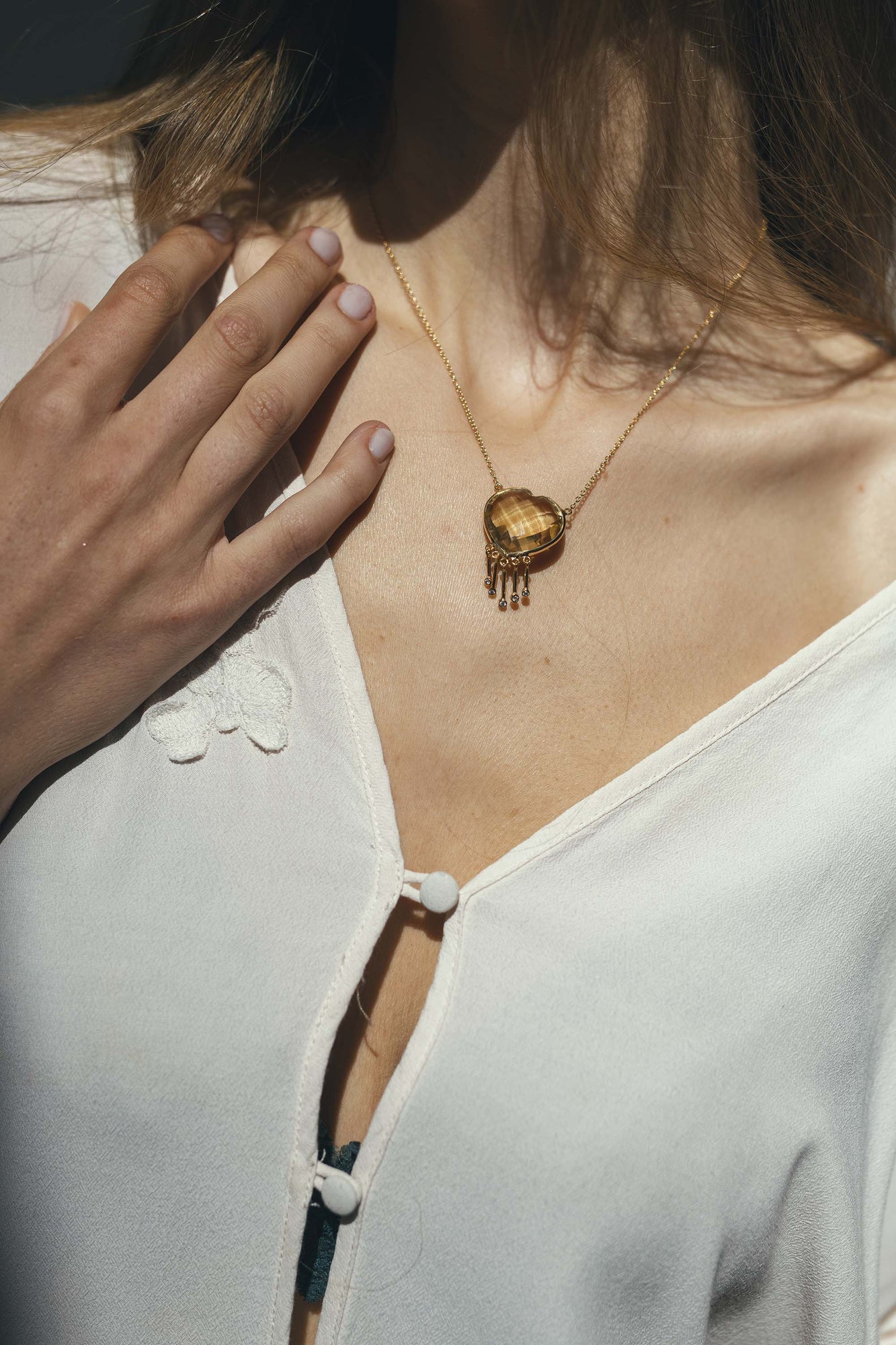 | Material | Sterling silver plated in 18k gold. Lemon Quartz and White Zircon |